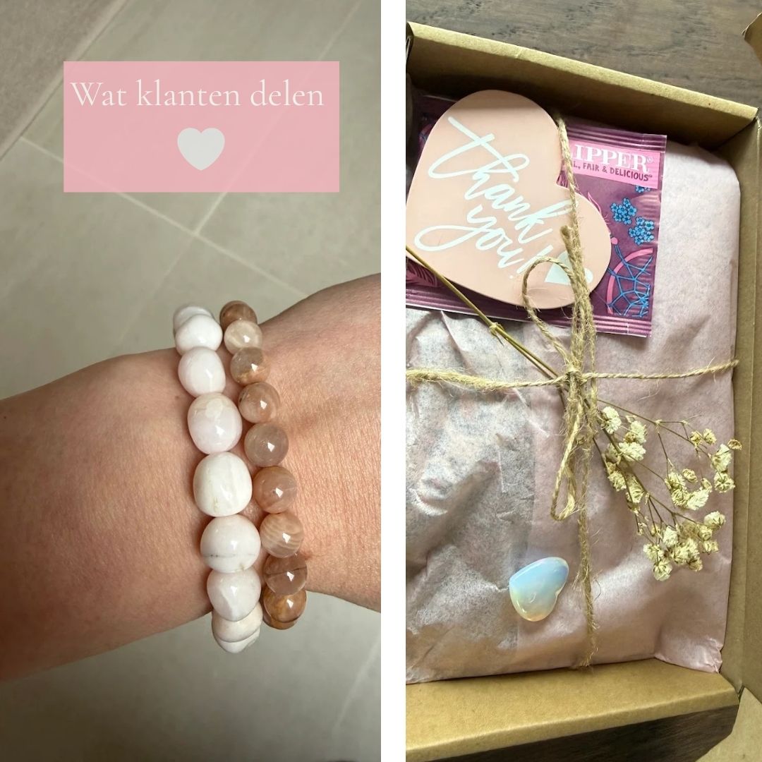 Bij elke optie ontvang je jouw gekozen steen(en), een intentiekaartje en een persoonlijke maandbrief, liefdevol verpakt als een cadeautje voor jezelf 🤍