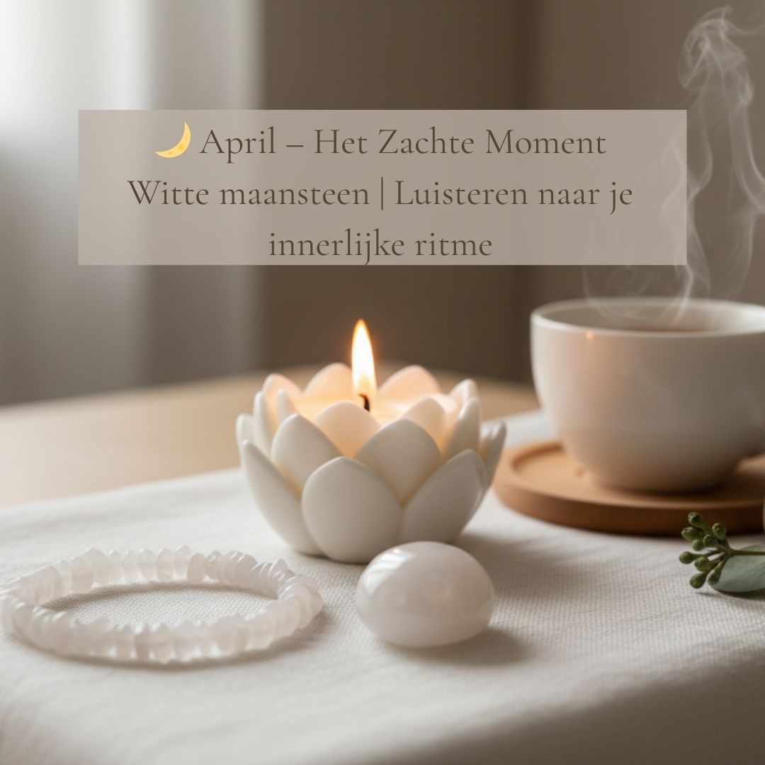Witte maansteen nodigt je uit om te luisteren naar je gevoel, mee te bewegen met je eigen ritme en zachtheid toe te laten, ook wanneer iets nog onduidelijk is.